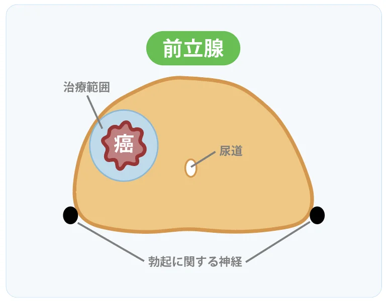 フォーカルセラピーでは、前立腺全体ではなく癌とその周囲のみを治療します。
